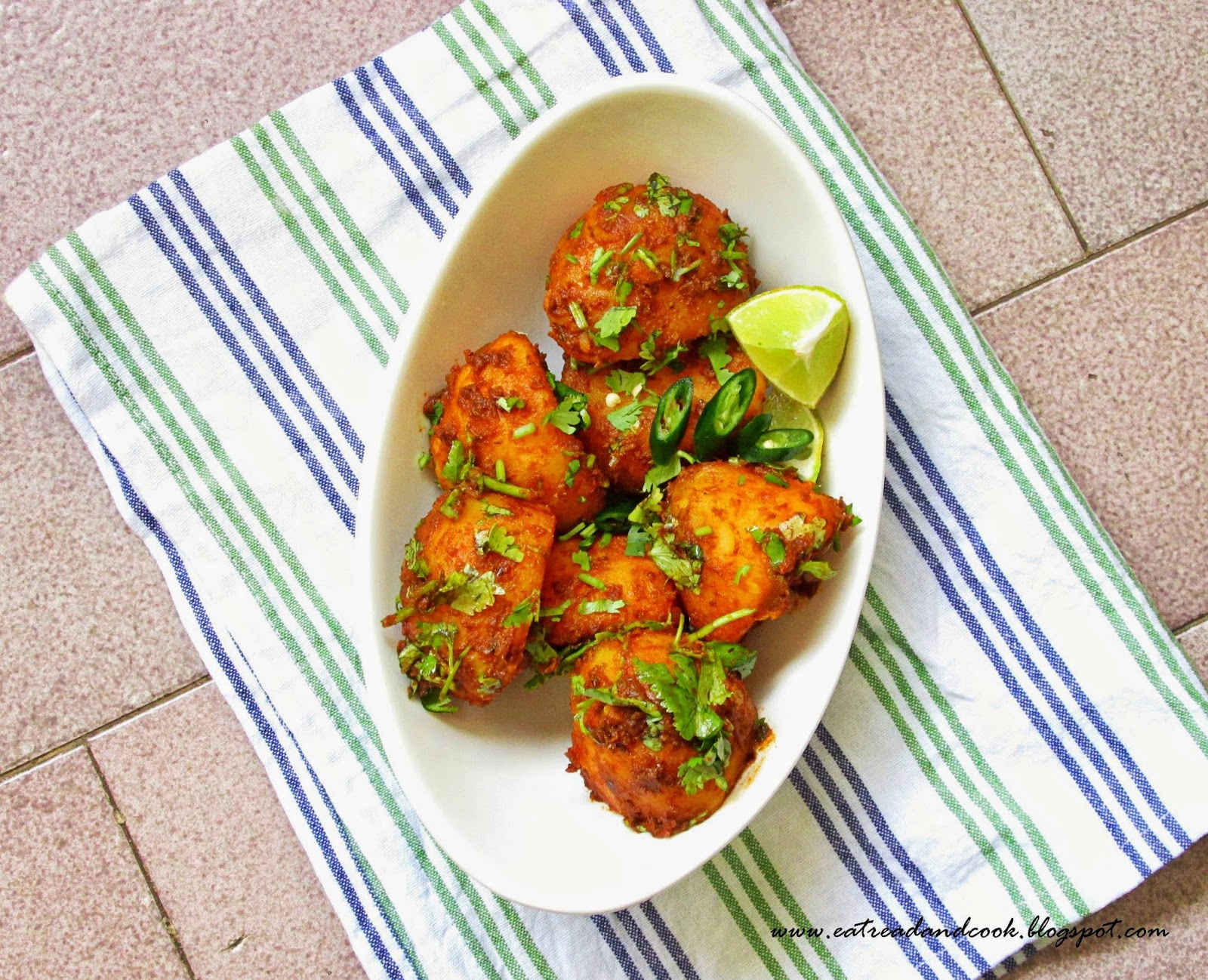 Thinking about my own school days, I cooked this dry dum aloo, which my grandmother was famous for. Mine was not sooo great like her, but those good old days came back for some time when I ate them. These dry dum aloo goes excellent with luchi / puri. This is the only combination I can think of with it. It also is a great appetizer, as I can eat them alone too. They are spicy, chili and real tasty. There is a station called Baleswar, on the way to Cuttuck and the vendors there sell exactly the same dum aloos. Trust me... these are great. Try to use baby potatoes. I could not find baby potatoes so I have used ordinary potatoes here.